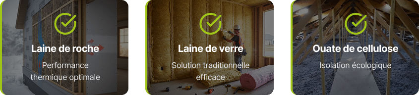 Nous travaillons essentiellement avec des partenaires de référence tels que Rockwool, Isover pour la laine de verre et Soprema pour la ouate de cellulose ( marque JetRock ), ainsi qu’avec d’autres fabricants reconnus comme Saint Gobain.